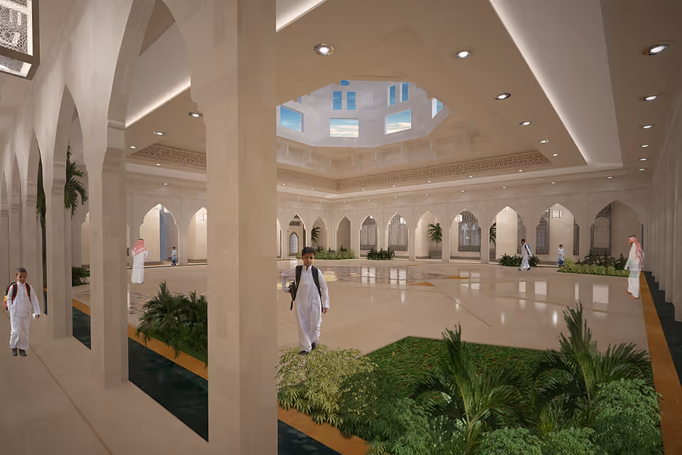 Al Madinah School is an Educational project located in al Madinah city and designed by SECA & Axis Interior. The school was designed to have an Islamic style using elements such as the Islamic patterns and arches to mirror the Islamic style within all spaces of the school including the classrooms , common halls, and staff residence.