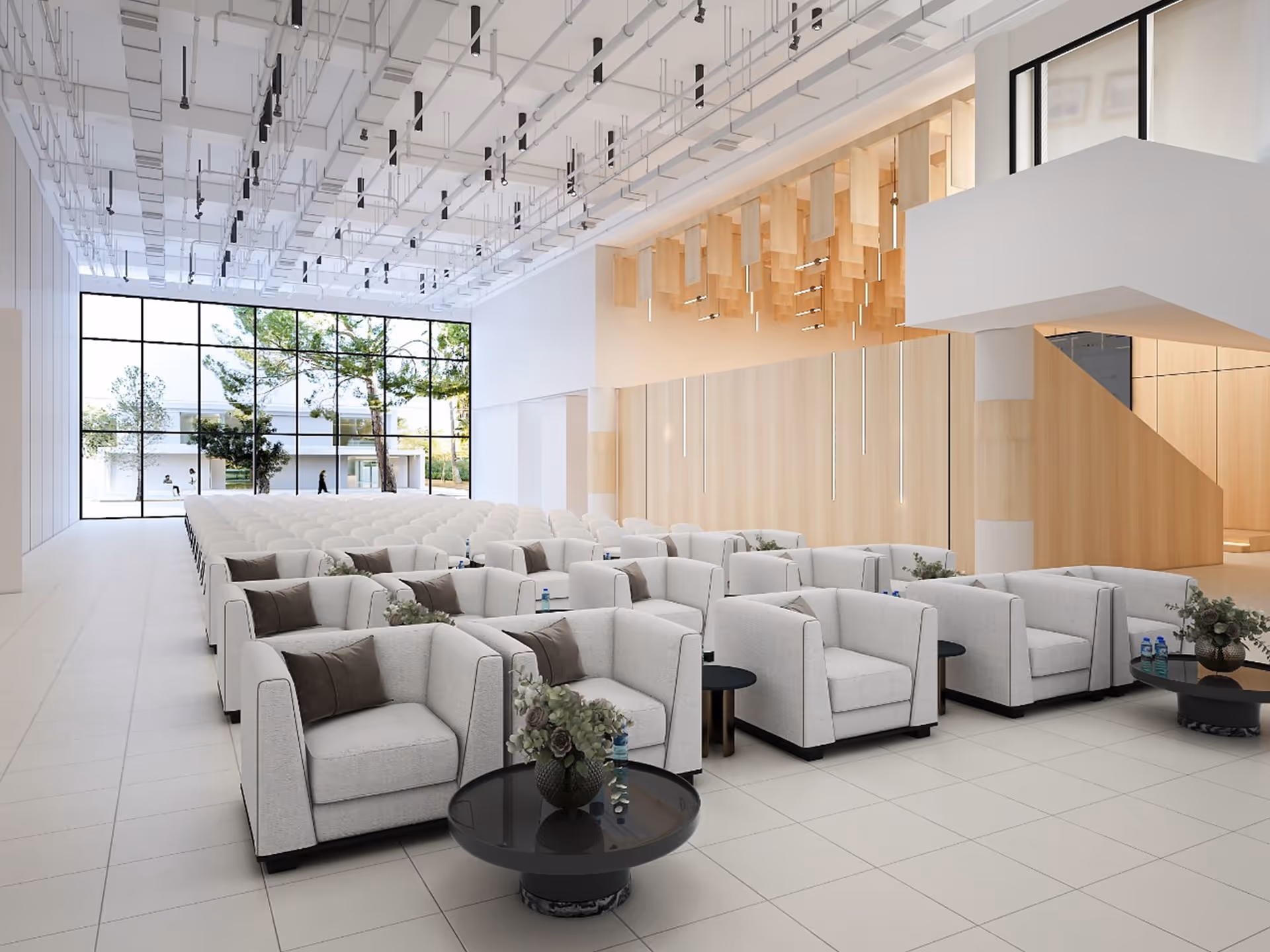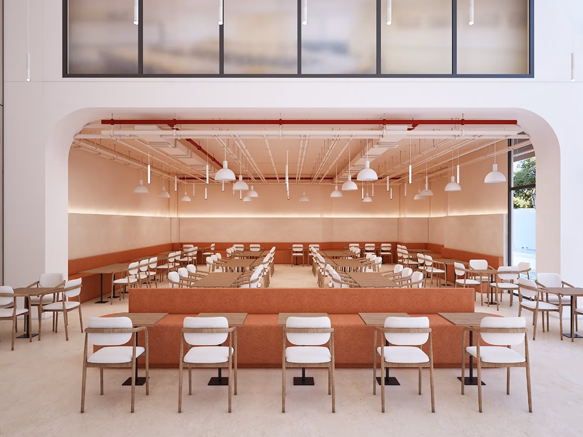 The SEC Design Project focuses on improving user experience by redesigning three spaces: the multi-use hall into a lounge, restaurant, entertainment room, and daycare; the head office into a modern workspace; and the parking roof into a café, With a total built-up area of 1,945 sqm. A new Building Management System (BMS) will also be added to improve operations across the Western Operation Area.